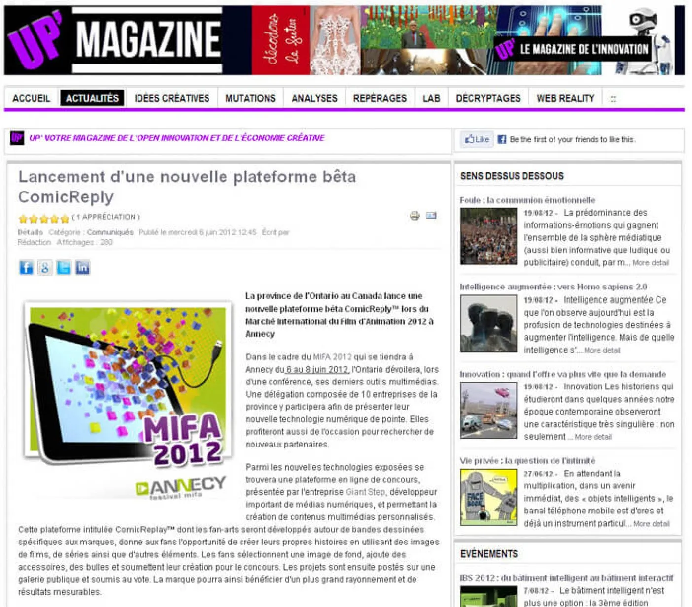 “Lancement d’une nouvelle plateforme bêta ComicReply”, UP’ Magazine SmartSystem, Paris, France
