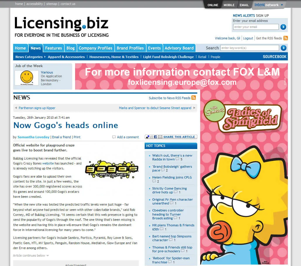 Global License! article – ‘Gogo’s Crazy Bones Headed for TV’ (already the second-biggest selling collectable in Walmart stores – sold 400 million units in 20-plus markets)