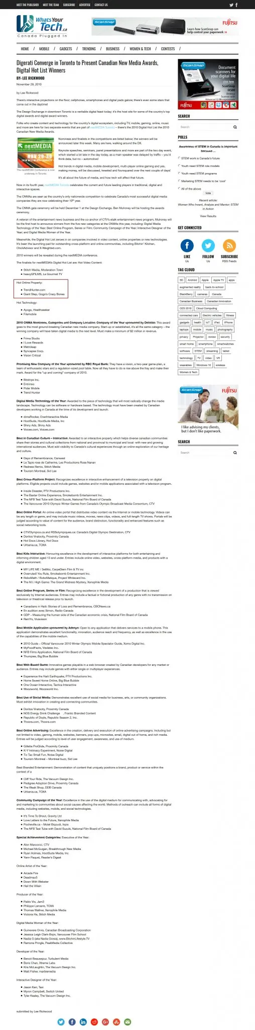 Giant Step selected as a finalist in the nextMEDIA Digital Hot List for gogoscrazybones.com in the Hot Online Property category.