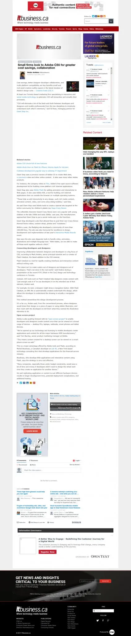 ITBusiness.ca – “Small firms look forward to Adobe CS5” >>