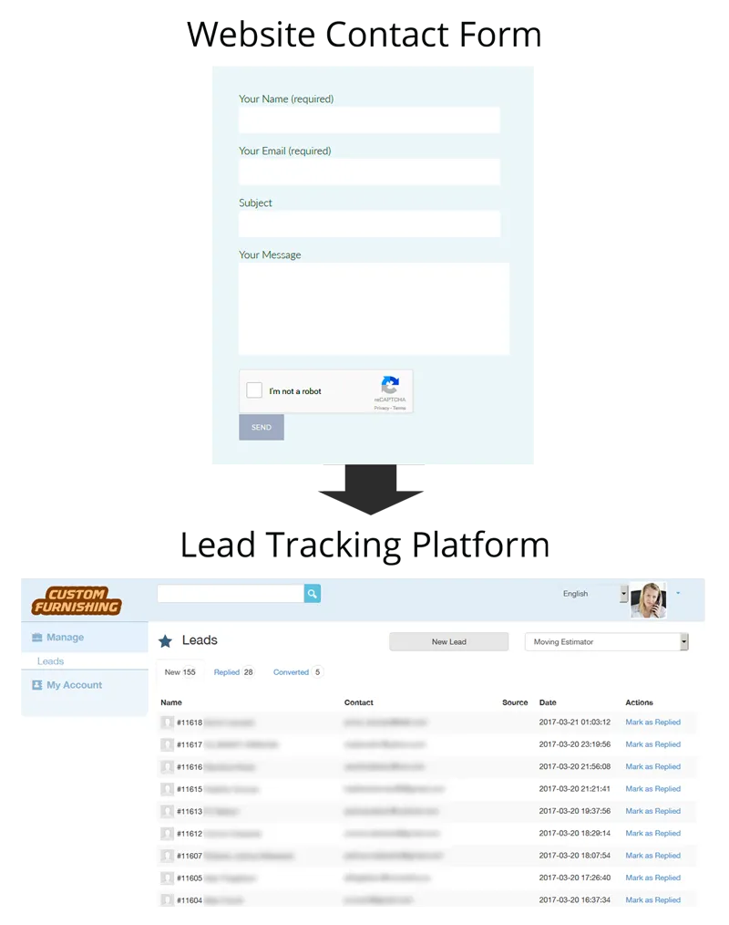Our lead tracking system connects to your contact form and saves a copy of every entry in a database on the cloud. That way you can always login and get: