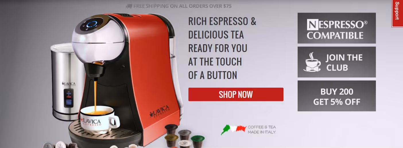 Nespresso-Compatible Coffee and Tea Capsules & Machines CLIENT CAFE LAVICA INC. LAUNCHED 2004 Visit The Site HIGHLIGHTS * Designed and developed the brand's website (using Magento eCommerce) * Enhanced the brand identity and general visual design * Produced a powerpoint presentation that led to retail placements