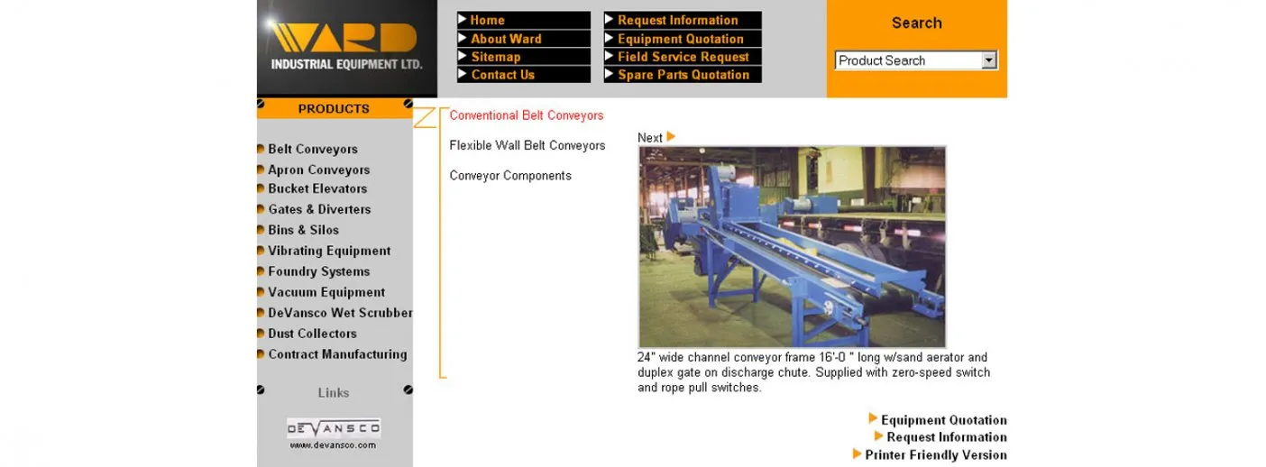 Photo Galleries for Manufacturer of Industrial Equipment CLIENT RADONIC RODGERS (for WARD INDUSTRIAL EQUIPMENT INC.) LAUNCHED 2006 Visit The Site HIGHLIGHTS * Manufactures equipment for industrial uses ( i.e. conveyors and elevators for mining ) * Website updates and added features * Product photo galleries