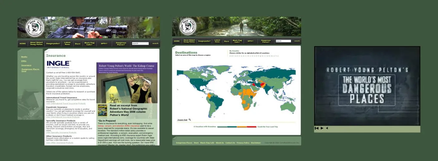Official Site of Adventurer Robert Young Pelton CLIENT INGLE INTERNATIONAL LAUNCHED 2006 Visit The Site HIGHLIGHTS * Digital marketing strategy for travel promo site * Official site for a world-renowned TV personality * Interactive Maps, Wiki, Videos, Photos, e-Store * Active Forum - 210,000 posts / 1,400 members * Top traffic ranked site in Australia * 60,000 unique visitors / month ABOUT THE PROJECT ComeBackAlive© is the official website of Robert Young Pelton, a renowned author, journalist, and documentary filmmaker. Pelton offers a unique experiential style of reporting on conflict-related issues by spending time with leaders from both sides of political conflicts, often returning with exclusive and unique footage. The Discovery Travel Channel series “Robert Young Pelton’s The World’s Most Dangerous Places” aired from 1998-2003 and inspired the formation of comebackalive.com – the site features ‘Dangerous Places’, an interactive map of the world, showcasing information form Pelton’s guides detailing the inter-workings of political unrest. The ‘Dangerpedia’ Wiki allows visitors to contribute their stories and experiences. The ‘Black Flag Café’ is a very active online forum with over 210,000 article posts and 1,400 registered members. The site also features Video clips from the Television show, links to various media interviews, articles […]