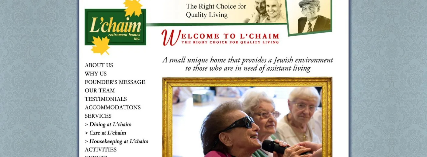 Web Site for Retirement Home CLIENT L'CHAIM RETIREMENT HOMES LAUNCHED 2011 Visit The Site