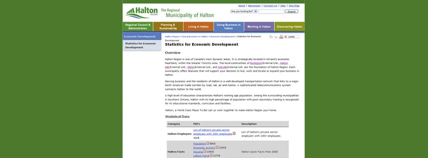 Government Statistics Reporting CMS CLIENT HALTON REGION MUNICIPALITY LAUNCHED 2007 HIGHLIGHTS * Custom Content Management System (CMS) * Supports reporting statistics about Halton * Reports regularly available for the public