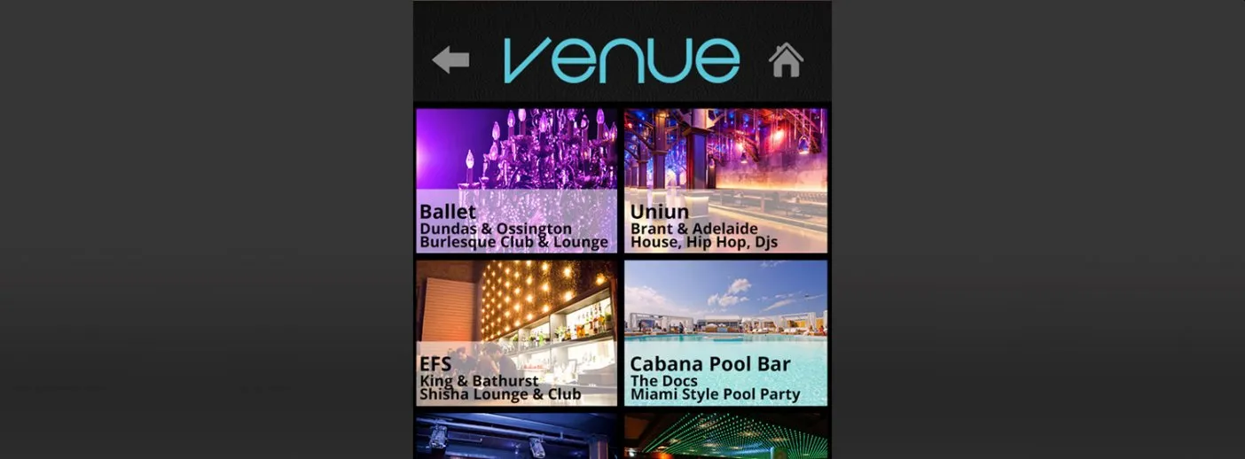 Prototype (MVP) for the Toronto Experience App CLIENT VENUE TORONTO LAUNCHED 2013 Visit The Site HIGHLIGHTS * Co-designed and developed a mobile app in HTML5 / PhoneGap * This was the Prototype / Minimum Viable Product (MVP) for Android and iOS * The app features Toronto venues and enables finding locations by mood.