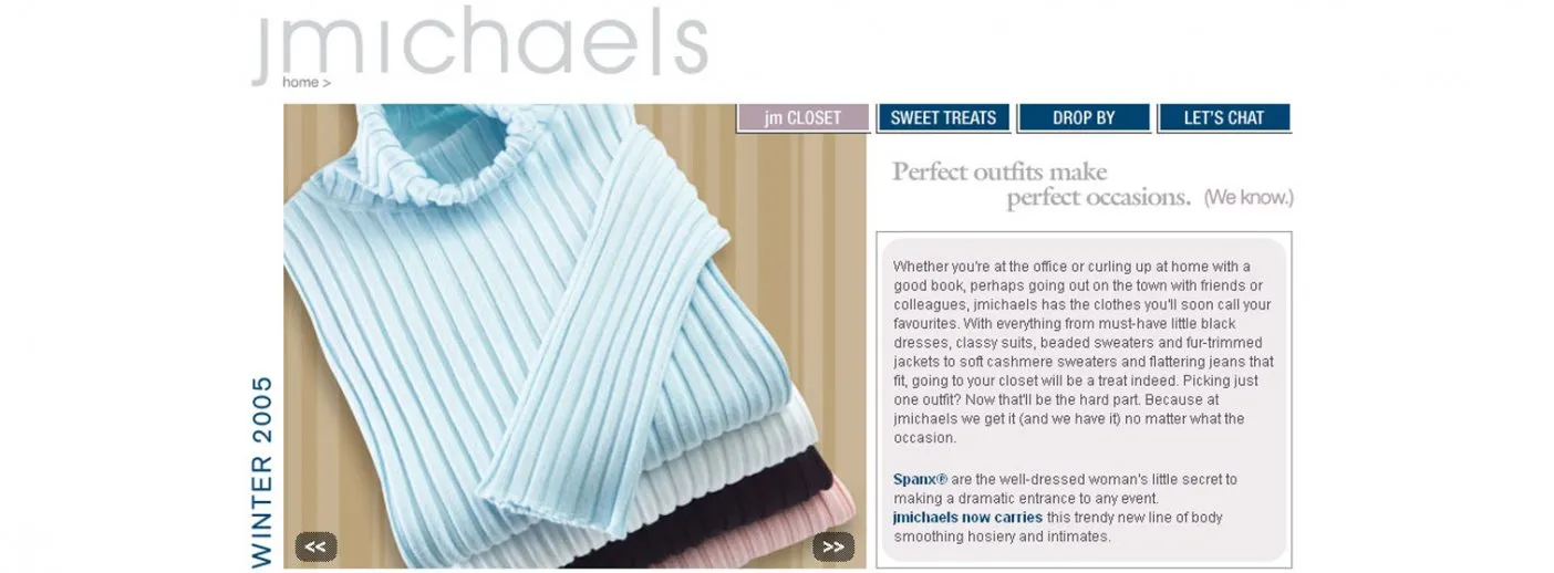 Online Fashion Promotion CLIENT RADONIC RODGERS (for JMICHAELS) LAUNCHED 2005 Visit The Site HIGHLIGHTS * Canadian women's fashion retailer * Online promotion for winter 2005 collection