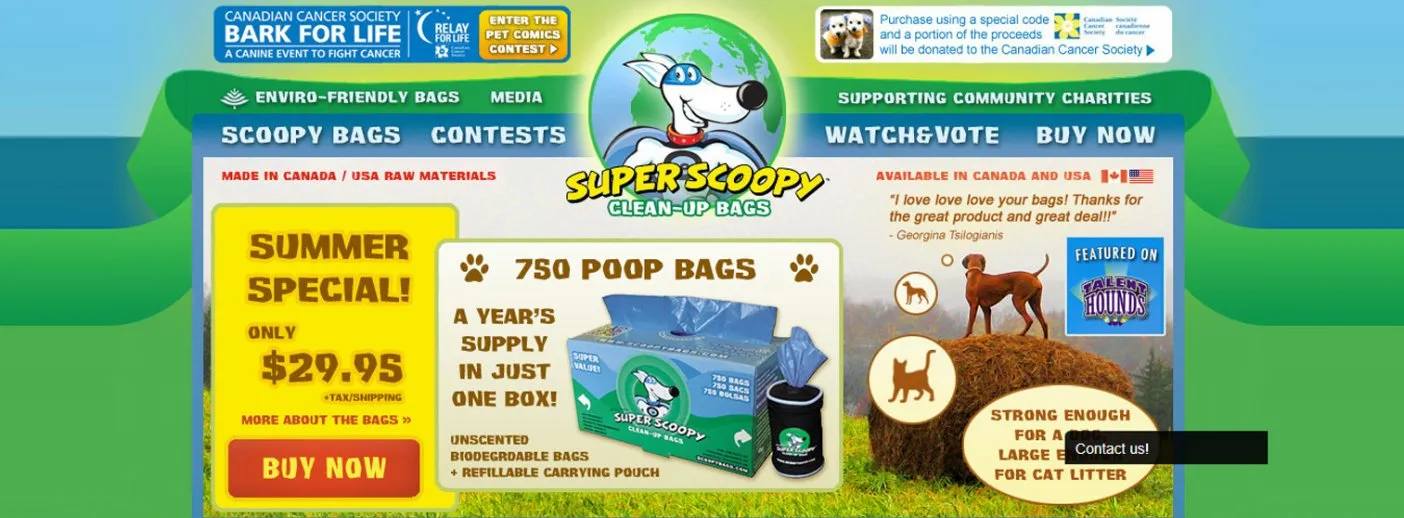 * Integrated marketing including a 'Pet Comics Contest' using Giant Step's ComicReply online contest platform - upload photos of your pet, add clip-art props, talking bubbles and post a 1-4 frame comics with your pet. The most-voted comics each month win a free box of Super Scoopy clean-up bags (a year's supply in just one box).