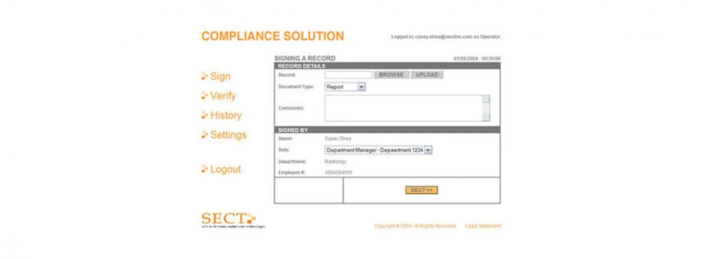 Secure Electronic Compliance Technologies (SECT) provides digital signature management solutions for achieving electronic compliance in regulated industries. Even in today's high-tech world, signatures are still recorded and administered on paper. Medical research requires practically a million personal signatures throughout the design of a new drug. Managing and auditing these 'signature vaults' takes many years.