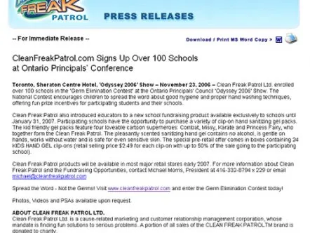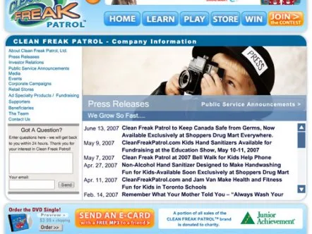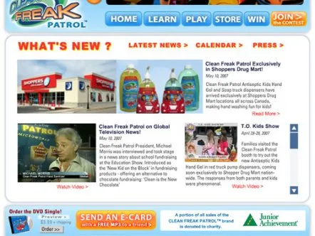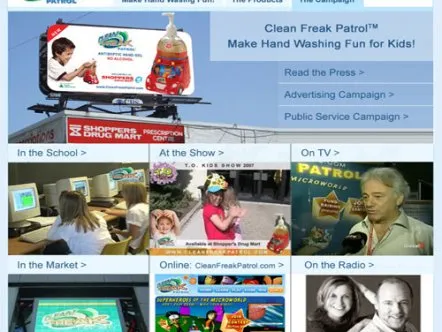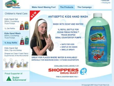 Clean Freak Patrol is a manufacturer of consumer hygiene products for children, including hand sanitizing gel, soap and wipes. Working with the Creative Marketing Network, Giant Step developed and implemented an overall marketing strategy for the company, which helped secure over $2.5M in venture capital for the company.