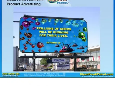 Giant Step produces both the trade and consumer marketing for Clean Freak Patrol. Trade materials include sales kit and trade show booth development, as well as writing sales presentations. In marketing to consumers, Giant Step produced a highly interactive website at www.CleanFreakPatrol.com as well as Television, radio, Internet and print ads, including outdoor billboards.