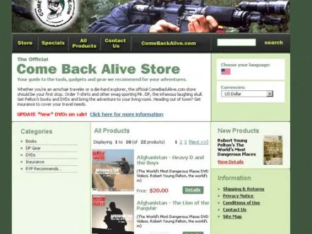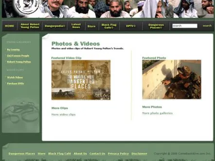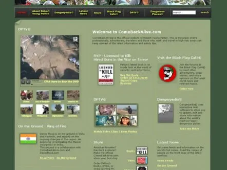 ComeBackAlive© is the official website of Robert Young Pelton, a renowned author, journalist, and documentary filmmaker. Pelton offers a unique experiential style of reporting on conflict-related issues by spending time with leaders from both sides of political conflicts, often returning with exclusive and unique footage.
