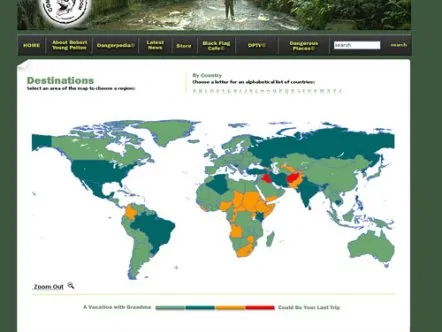 The Discovery Travel Channel series “Robert Young Pelton’s The World’s Most Dangerous Places” aired from 1998-2003 and inspired the formation of comebackalive.com – the site features ‘Dangerous Places’, an interactive map of the world, showcasing information form Pelton’s guides detailing the inter-workings of political unrest.