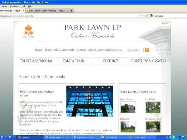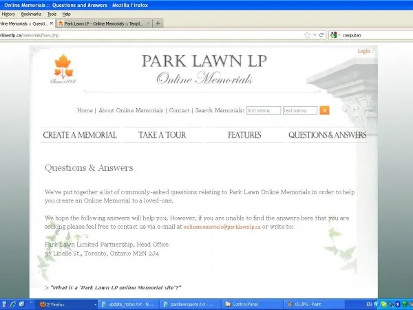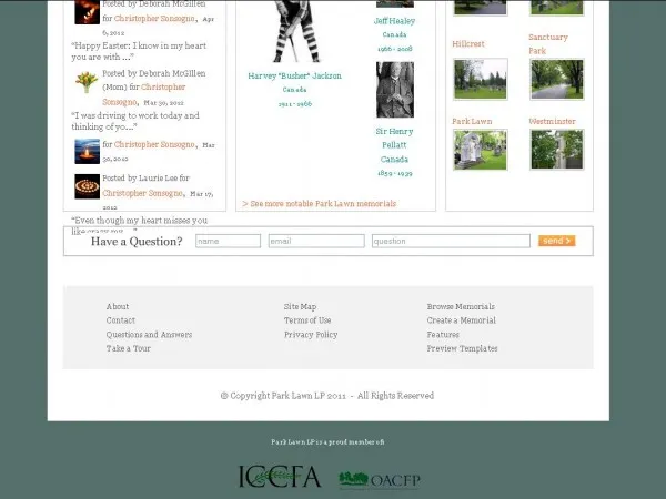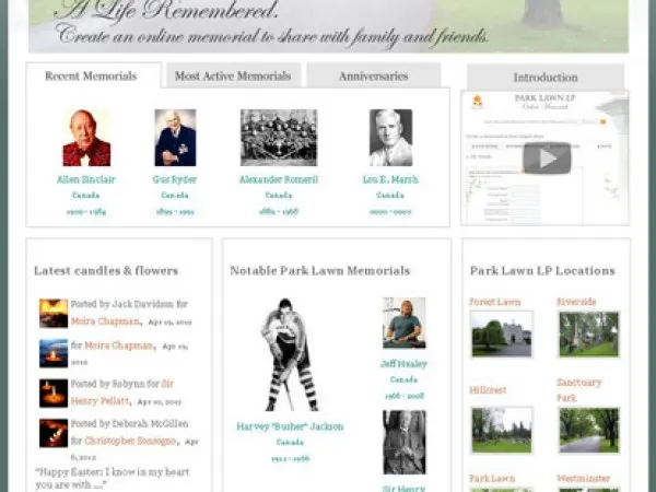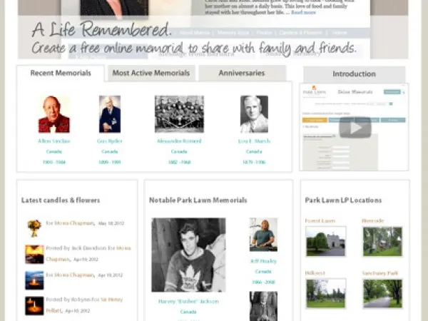 * Customized the Online Memorial platform for Park Lawn LP, the second-oldest cemetery group in Toronto, established in 1892.