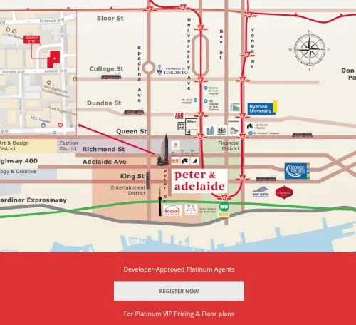 - Custom map of Toronto highlighting landmarks (web & print signage)
