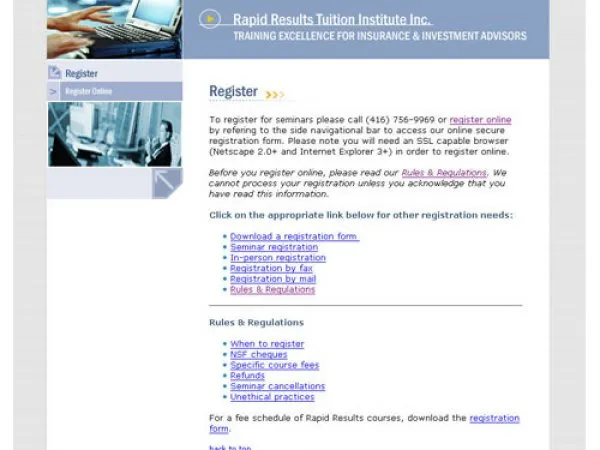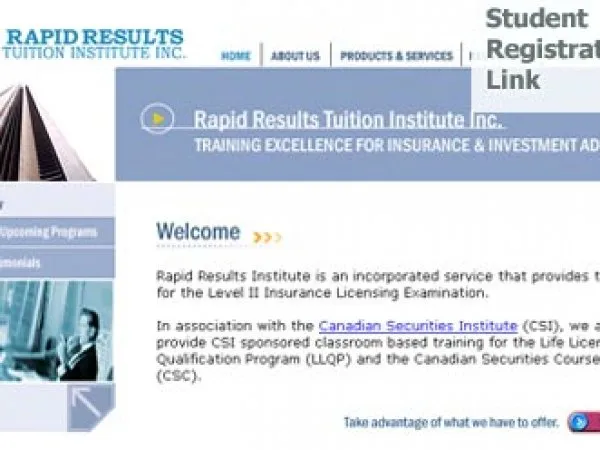 Rapid Results Institute specializes in assisting life insurance companies and brokers in meeting their agents' licensing objectives rapidly and cost-effectively. The Rapid Results programs are approved by the Canadian Securities Institute, and prepare students for the Level II Insurance Licensing Examination.
