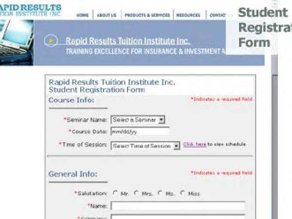 An HTML web site was already made, but required HTML knowledge to update the online course schedule. Also, an online registration form was needed to take student applications.